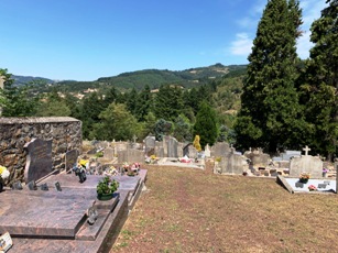 Le cimetière est une pente inclinée dans laquelle les rangées descendent en gradins.
