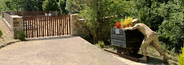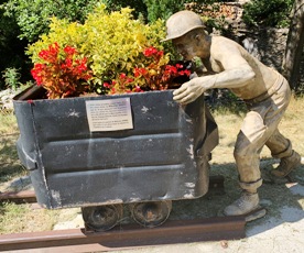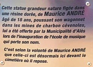 A l’entrée du cimetière, une insolite statue d’un mineur cévenole poussant son wagonet : l’explication nous en est rapidement donnée par une plaque.