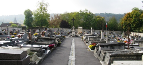 les salons de la Société des artistes français. Il produisit beaucoup d’aquatintes, de pointes sèches, d’eaux fortes et quelques affiches publicitaires. Il avait une résidence secondaire dans la commune, d’où sa présence dans ce cimetière, mais je n’ai pas retrouvé sa tombe.