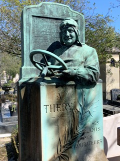Il repose sous l’un des plus étonnants tombeaux du Père Lachaise : il est représenté au volant d’une voiture devant une calandre, dû au sculpteur Marc Robert et au fondeur Malesset.
