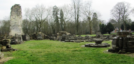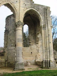 La construction de l’abbatiale gothique commença sans doute à la fin du XIIe siècle. En 1217, l’abbé Adam est le premier enterré dans le chœur, achevé lors de la dédicace de l’église en 1219. À la suite des destructions, il subsiste de nos jours en élévation les grandes arcades de l’extrémité nord du transept, quelques fenêtres hautes, l’escalier des matines, qui permettait d’accéder depuis le dortoir à l’abbatiale. La sacristie est la seule pièce toujours existante, prolongée par une petite partie du mur entre le bas-côté et le cloître. Subsiste aussi toujours la tour pinacle, haute de 34 m, qui, outre son rôle d’arc-boutant, permettait d’accéder au dortoir des moines, à la chambre de l’abbé, à la salle du trésor et tout au sommet à une salle de guet.