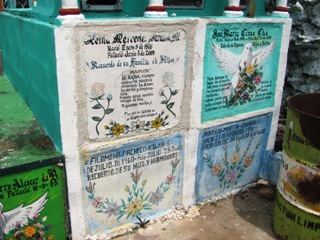 Les inscriptions sur les tombes sont en langue espagnole ou en langue maya. Les familles qui ne disposent pas de moyens financiers suffisants pour faire construire un caveau peuvent louer tout ou partie d’un caveau à une autre famille.