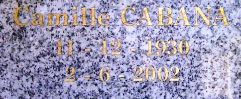 C’est au nouveau cimetière d’Elne que repose Camille CABANA (1930-2002). Issu d’un milieu paysan très modeste, d’origine espagnole par son père, immigré en France dans les années 1920 ; il fut souvent été cité en exemple pour avoir su intégrer l’ENA, mais par la voie interne. Sous-préfet à Grenoble, il participa à la mise en place des Jeux olympiques d’hiver de 1968. À l’occasion de la première élection de Jacques Chirac à la mairie de Paris en 1977, il rejoignit son équipe et occupa successivement les postes d’adjoint à l’urbanisme puis aux finances, jusqu’à sa nomination au poste de secrétaire général de la ville de Paris. Sous le second gouvernement Chirac de 1986 à 1988, il occupa plusieurs postes de ministre délégué : ministre délégué à la Privatisation, à la Réforme administrative, ministre délégué aux Rapatriés. Il fut sénateur RPR de Paris de 1991 à 1995. L’année suivante, il prit la succession d’Edgard Pisani à la présidence de l’Institut du monde arabe.
