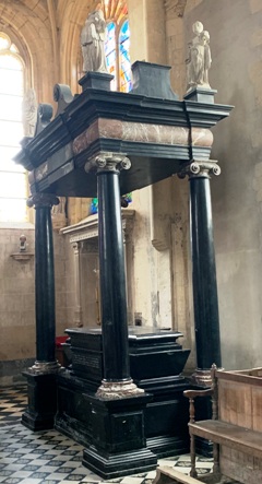 Repose également dans cette église le compositeur Henri HARDOUIN (1727-1808). Maître de chapelle, il fut l’auteur de musiques religieuses, dont 46 messes. L’article Wikipedia qui lui est consacré indique que deux plaques commémoratives ont été posées, mais je n’ai rien trouvé de tel lors de ma visite.