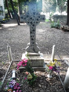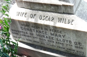 C’est loin du Père Lachaise que l’on trouvera Constance LLOYD (1858-1898), qui avait épousé Oscar en 1884 alors qu’il était au début d’une carrière qui s’annonçait prometteuse. Délaissée par son époux lorsque celui-ci découvrit son homosexualité, elle devint journaliste et s’engagea avec ardeur dans le combat féministe. L’emprisonnement de Wilde puis sa banqueroute et la vente de tous leurs biens dans des conditions les plus humiliantes brisèrent définitivement leur vie. Constance, à la santé devenue fragile à la suite d’une chute, fut contrainte à l’exil et se réfugia en Allemagne, en Suisse, puis en Italie. Atteinte d’une sclérose en plaques, maladie neurologique dégénérative, Constance décéda en 1898 des suites d’une opération, sans avoir revu son mari. Oscar se rendit sur sa tombe au cimetière du Stagliano de Gênes en 1899, puis décéda à son tour à Paris quelques mois plus tard.