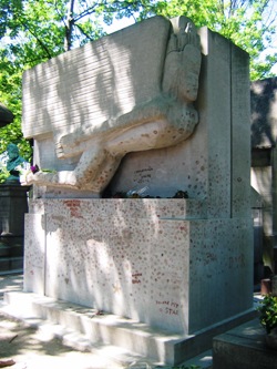 Il fut dans les années 90 victime d’une overdose de rouge à lèvres : les visiteurs, pas tous admirateurs mais tous amateurs de la pratique, avaient pris l’habitude de déposer un baiser sur sa sépulture. Résultat : la matière grasse déposée endommagea sévèrement la pierre et laissa des traces indélébiles. Chaque débarbouillage usait la pierre et la rendait plus poreuse.