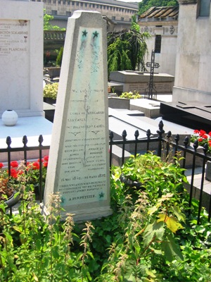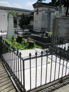 La sépulture familiale se présente de la manière suivante : un enclos composé d’une stèle de taille modeste (pour lui et son épouse) enveloppé de végétation précédant trois lourdes dalles sur lesquelles figurent l’identité de leurs descendants, le tout entouré d’une grille. C’est ainsi que reposent également dans ce caveau :