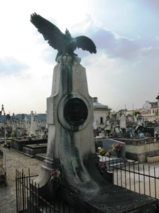 : elle est surmontée d’un aigle aux aîles déployées et est ornée d’un beau médaillon en bronze de Robert Delandre. Un article, paru dans le Sud Ouest du 30 décembre 2011, nous en apprend un peu plus : D’où vient ce grand aigle en bronze posé sur la tombe d’un aviateur et qui semble prêt à s’envoler au-dessus du cimetière Saint-Georges, de Périgueux ? Qui était ce pilote qui aujourd’hui semble n’avoir aucun descendant périgourdin ? Le mystère vient d’être levé sur cette tombe imposante et sur l’histoire de ce lieutenant Briault. C’est le résultat de longs mois de recherches effectuées par Claude Gallay, de la société historique et archéologique de Chelles, en Seine-et-Marne, d’où était originaire Briault.