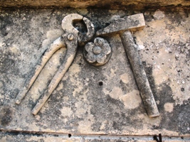 Hormis cette tombe, on remarquera, sortis du ciseau d’un sculpteur, un marteau et une tenaille sur une tombe proche.