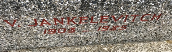 russe s’étant installé en France suite aux pogroms, ce philosophe débuta sa carrière universitaire à Toulouse, puis à Lille, mais perdit sous l’occupation sa nationalité française et son poste d’enseignant. Professeur à la Sorbonne après la Libération, il mena dans ses ouvrages une réflexion tant philosophique qu’esthétique. Il aborda des thèmes souvent délaissés par la philosophie (tel l’ennui, ou encore le mensonge). Influencé par Bergson, dont il a été le continuateur et à qui il a consacré son premier ouvrage, Jankélévitch a également développé une réflexion sur l’existence de la conscience dans le temps. Il fut en outre un musicologue reconnu. Sa tombe est devenue quasiment illisible.