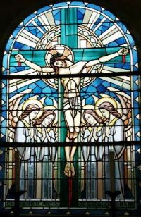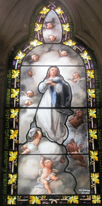 Quelques beaux vitraux, signés Charles Simon.
