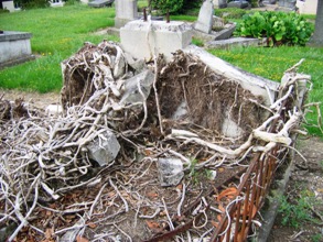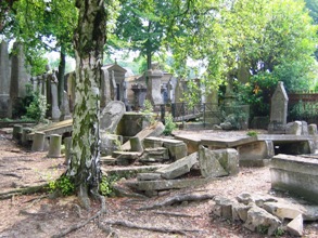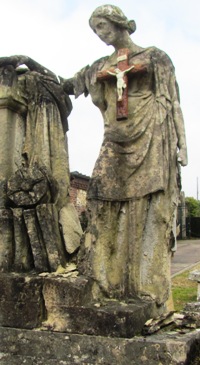 A y regarder de près cependant, le cimetière monumental de Rouen nous montre des contrastes : celle d’une imposante monumentalité fort entretenue qui côtoie des tombeaux décaties, amoncellement de pierres, tombeaux renversés assaillis par le lierre, vitraux cassés… au gré de la disparition des familles.
