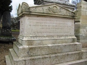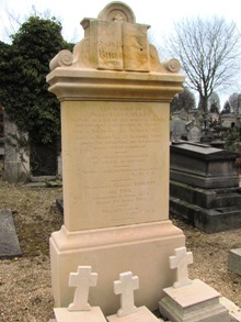Edmé DUMÉE (1792-1961) : directeur du matériel théâtral de la ville de Rouen, il peignit les décors pour l’opéra dans les années 1830. Peintre de paysages, il envoya de nombreuses aquarelles au Salon de Paris à partir de 1831, représentant des vues de sa région. Il était le père de Pierre qui mourut sur les barricades (voir plus haut) et son tombeau se trouve en face de celui de son fils. (M2)