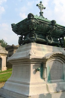 – Etienne NÉTIEN (1820-1883), qui se fit élire au conseil municipal de cette ville en tant qu’opposant à Napoléon III. Il avait cependant la réputation d’être un républicain très modéré. Il fut maire de Rouen au lendemain du 4 septembre 1870 jusqu’en 1876, et dut faire face à l’occupation de la ville par les Prussiens. Devenu conseiller général, il fut également député de la Seine-Inférieure de 1871 à 1876. Emphase de son mausolée où l’on voit l’aigle impérial se prosterner devant les armoiries de la ville ! (L)