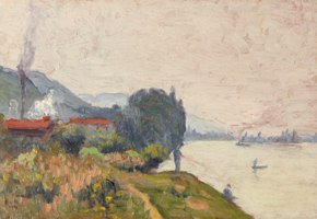 pendant cinq ans à l’École supérieure des beaux-arts d’Alger. En 1878, il retourna en France et étudia avec Jean Paul Laurens ; il exposa avec les impressionnistes en 1879 et 1880, et au Salon de 1883 à 1895. Les paysages d’hiver et les sites au bord de l’eau furent la prédilection de cet artiste. (B)