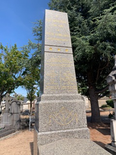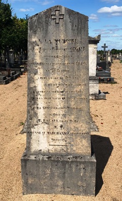 - Une stèle fut dressée « à la mémoire de Luc Laurent Barthélémy Bigot, ouvrier tonnelier, qui pendant les inondations de 1846, le 21 octobre, a péri à l’âge de 30 ans au milieu des eaux en portant secours aux inondés après en avoir sauvé un grand nombre » [section A].
