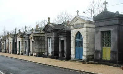 Triste ! Orléans a perdu l’essentiel de son patrimoine funéraire ancien. Pourtant, les bases auraient pu être bonnes : il y eut un premier Grand cimetière, le Campo Santo, un grand cloître enherbé entouré de galeries avec arcades (XVe/XVIe siècles). Il fut, du XIIe siècle à 1786 la principale nécropole de la ville, mais fut désaffecté à la fin du XVIIIe siècle et devint, de 1824 à 1884, une halle aux blés. Il fut alors transformé en salle des fêtes jusqu’en 1970, date à laquelle les bâtiments furent détruits et le cloître rénové pour devenir peu à peu un grand espace de plein air évènementiel.