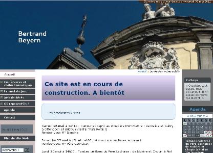Certains ces derniers temps me posaient des questions sur lui ; disparition progressive de la page AFIF, du Necropoly, et mêmes de ses fameuses visites. Je rassure le monde : Bertrand Beyern va bien, et pour l’occasion, je présente en prime time son nouveau site qui est encore en partie en construction : http://www.bertrandbeyern.fr/ J’ignore quelle sera sa structure finale : il y présente son calendrier de visites bien entendu, mais également plusieurs rubriques, dont notamment une nécrologie (tiens, tiens ! Bertrand, ça me dit quelque chose ;-))