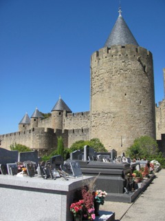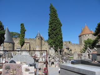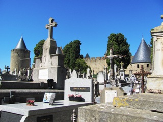 Le cimetière actuel de la Cité a remplacé un enclos situé le long du chemin de Lagrasse, un peu plus au sud. Son principal intérêt est sa position, aux pieds des remparts, donnant au lieu une majesté hors pair.