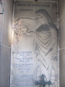 Après consultation de ses registres, la gardienne du cimetière, munie d’une clef imposante, dans mon souvenir en tout cas, me conduisit à l’ossuaire, en ouvrit la porte et, après avoir descendu quelques marches, me présenta la case dans laquelle reposaient les restes de mes deux ancêtres et sur laquelle avait été apposée une plaque à leurs noms.