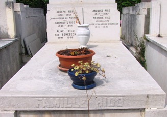 oeuvres, qui connut un véritable succès (en particulier avec ses valses lentes). Il fut interprété par des pointures de l’époque, comme Bérard (son grand tube fut J’ai tant pleuré). Il fut également l’un des fondateurs de la manufacture d’anches Rico International, à laquelle il donna son nom. Avec lui repose son fils, le journaliste Francis RICO (1913-1971).
