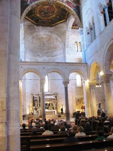 La basilique a été construite entre 1087 et 1197, pendant la domination italo-normande des Pouilles. Sa fondation est directement liée au vol des reliques de Saint Nicolas. Une nouvelle église a été construite pour les abriter, honorée de la présence du pape Urbain II lors la consécration de la crypte en 1089.