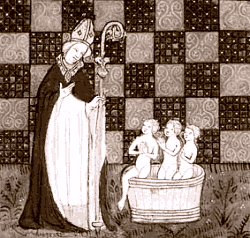 Saint Nicolas, également connu sous le nom de Saint Nicolas de Myre ou de Saint Nicolas de Bari, serait né à Patara, en Lycie, en 270, et mort en 345. Il est saint patron des Lorrains, des Russes, des Fribourgeois, des Ovillois, des écoliers, des étudiants, des enseignants, des marins, des hommes et femmes souffrant de stérilité, des célibataires, des vitriers, des bouchers, des voyageurs. Sa commémoration chrétienne le 6 décembre (qui tombe actuellement le 19 décembre dans les pays qui utilisent le comput julien pour les fêtes religieuses) est une fête très populaire dans bien des pays du monde.