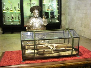 Relique de relique ! Sont également conservés pieusement des morceaux de bois appartenant au coffre dans lequel furent rapportés les restes du saint.