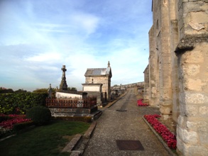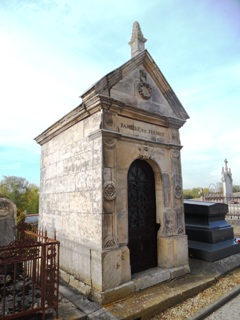 En face de l’église, l’unique chapelle, imposante, est celle du baron Joseph-Marie de Frémiot (+1872). Ce n’est pas tant lui que son épouse, qui repose à ses côtés, qui nous intéresseront : il s’agit de Félicité Louise Julie Constance de Durfort (+1870), qui fut mariée en première noce avec Pierre Riel, comte, puis marquis de Beurnonville (1752-1821), pair et maréchal de France. A ce titre, elle fut peinte par le peintre Merry-Joseph Blondel.
