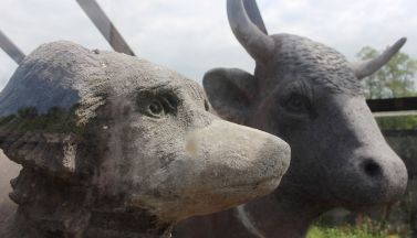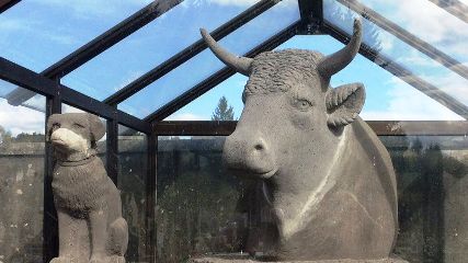 Une curiosité dans le petit cimetière de Sarroux : une vache et un chien statufiés sut la tombe de Léon Charbonnel (XIXe siècle), qui conduisait les vaches Salers vers le Poitou et les Charente, où elles étaient utilisées pour défricher les Landes. La commune les a fait restaurer et placer sous un abri de verre et de métal, pour les protéger des intempéries mais aussi du vandalisme.
