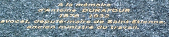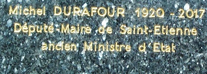 Il repose dans un tombeau distinct, mais dans le même cimetière que son père, Antoine DURAFOUR (1876-1932), membre du Parti républicain, radical et radical-socialiste, maire de Saint-Étienne de 1930 à 1932, député de la Loire de 1910 à sa mort, qui fut également ministre du Travail et de la Prévoyance sociale de 1925 à 1926. Une plaque sur le tombeau de Michel rappelle la mémoire d’Antoine.