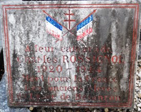Y repose dans son village natal le Compagnon de la Libération Charles ROSSIGNOL (1920-1944). Saint-Cyrien, refusant la défaite, Charles Rossignol décida de rejoindre le général de Gaulle à Londres. Déguisé en soldat polonais, il s’évada de France. Engagé dans les Forces françaises libres, il fut d’abord affecté à l’encadrement des jeunes volontaires à l’instruction sur le sol anglais. Désirant ardemment se battre, il multiplia les demandes de mutation pour une unité combattante. En novembre 1941, il obtint une affectation au Bataillon de marche n°11 (1ère DFL) alors en formation à Beyrouth. Il prit part successivement à toutes les campagnes avec son bataillon, s’illustra à El Alamein. Après la campagne d’Italie, il débarqua en Provence en août 1944 avec son unité avant la remontée de la vallée du Rhône. A la libération de Besançon, il retrouva ses parents mais, quelques jours plus tard,alors qu’il s’est porté volontaire pour commander une reconnaissance dangereuse, le lieutenant Charles Rossignol fut tué par balle devant Granges-la-Ville près de Villersexel en Haute-Saône, à quelques kilomètres de chez lui.