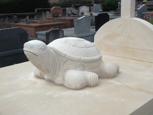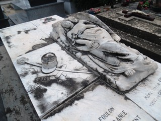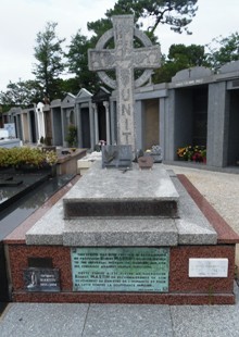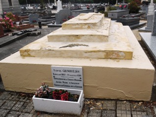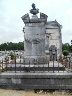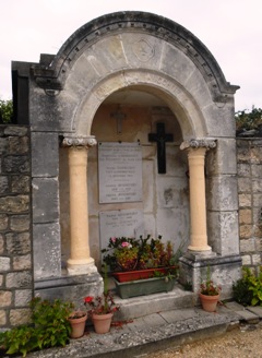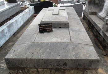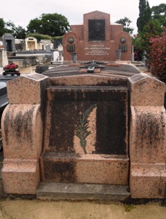 Sa tombe reproduit ses attributs militaires (képi, épée, Croix de Guerre avec palmes et étoile, Légion d’honneur). L’ange est une évocation de sa fille, morte jeune.