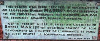 Arcachon possédait son "guérisseur local" (comme il y en a tant dans les cimetières) : Robert Martin (+1966). Sa clientèle provenait principalement des Landes, de Biscarrosse et de Mont-de-Marsan ; des ruraux, cultivateurs, éleveurs, agriculteurs, propriétaires ou simples fermiers ou maraîchers. le « Professeur » utilisait également le traitement à distance grâce au "World télépsychic service", au moyen de lettres, mèches de cheveux, gazes portées par le malade ou photographies. Des patients offrirent une statue représentant ce "guérisseur selon les saintes écritures", œuvre du sculpteur Claude Bouscau. Elle n’est pas sur sa tombe : en Juillet 2000, elle fut installée dans le Parc des Abatilles à Arcachon. Robert Martin, fut aussi évêque gallican. En 1965, il fut cité à comparaître devant le tribunal correctionnel pour exercice illégal de la médecine. Sa tombe fut aussi réalisée par Claude Bouscau.