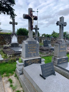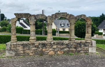 L’ancien cimetière entourait partiellement l’église Saint-Sauveur et la chapelle Saint-Colomban. Il comportait, comme dans de nombreuses paroisses, un ossuaire en granit, placé contre le mur nord de l’église. Après le transfert du cimetière cet ossuaire devenu inutile était demeuré en place. Lors de la reconstruction de l’église, les arcades de l’ossuaire furent remontées, en 1988, sous forme d’un portique rectiligne dans le nouveau cimetière.