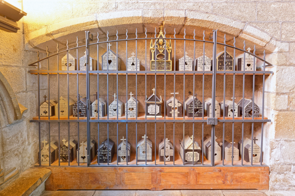 La « collection » la plus impressionnante de chefs se trouve à Saint-Pol-de-Léon (Finistère). Ces reliquaires se trouvent dans une chapelle latérale de la cathédrale Saint-Pol-Aurélien et ont le beau surnom d’étagères de la nuit.
