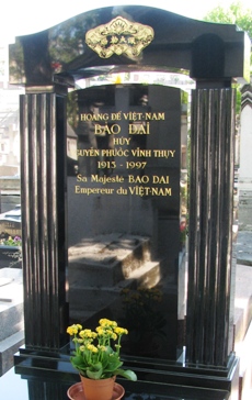 Il fut rejoint en 2021 par sa dernière épouse, Monique Baudot, devenue princesse V ?nh Th ?y (1946-2021). Elle avait rencontré l’empereur en 1969, alors qu’elle était chargée du service de presse à l’ambassade de la République démocratique du Congo à Paris. Pendant plusieurs années, elle eut le statut de « concubine impériale ». Le mariage civil fut célébré en1982. Chrétienne convaincue, la princesse Vinh Thuy obtint que son mari reçoive le baptême catholique, en 1988, sous le prénom de « Jean-Robert ».