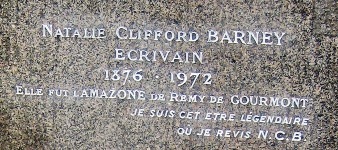 Ecrivaine américaine, elle marqua durablement son époque tant par ses œuvres (Pensées d’une amazone, Nouvelles pensées d’une amazone) que par ses liaisons lesbiennes tumultueuses qui défrayèrent la chronique (Liane de Pougy, Renée Vivien). Elle fréquenta l’élite intellectuelle de son temps, de Colette à Gide, de Valéry à Yourcenar... Elle est devenue de nos jours une icône lesbienne.