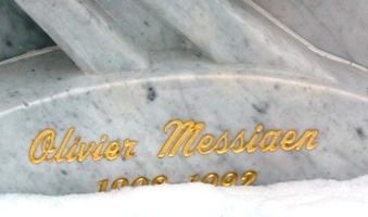 C’est par un froid glacial, après avoir gravi, sur la route Vizille-La Mure, la redoutable pente de Laffrey où Napoléon rencontra les troupes royalistes venues l’arrêter après son retour de l’île d’Elbe, que j’ai pu accéder au petit village de Saint-Theoffrey, bordé de lacs, et constitué de plusieurs hameaux. Près de l’église (il faut quitter la route principale et monter sur la droite) se trouve le minuscule cimetière qui domine cette région coincée entre le Vercors et les Ecrins. Parmi les quelques dizaines de tombes qui le composent, celle du compositeur Olivier MESSIAEN (1908-1992).