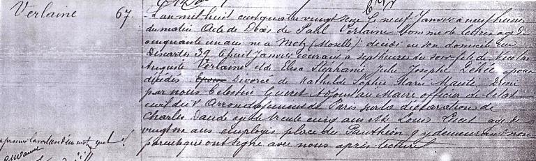 Acte de décès de Paul Verlaine - Paris.