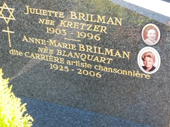 Remarquons que la photo n’est plus à jour, Philippe Brilman (1927-2016), son second mari, épousé en 1964, y a ajouté son patronyme, et une étoile de David...