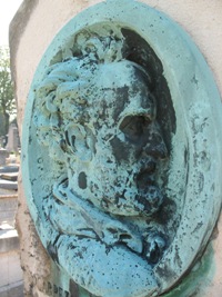 Carpeaux travailla peu pour le funéraire. On lui doit cependant le médaillon en bronze de la tombe Carpezat du cimetière Montparnasse (6ème division).