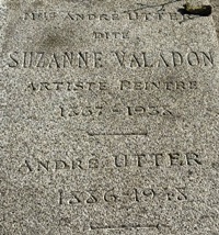 Suzanne Valadon se trouve dans la 13ème Div. du nouveau cimetière parisien de St Ouen, c’est à dire la Div. juste à l’entrée sur le côté gauche, la tombe se trouve vers le bout de la Div. par l’Av. de l’ouest.