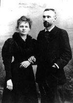 Marie, quant à elle, s’intéressa aux travaux de Roentgen et Becquerel. Le couple découvrit deux nouveaux radioéléments : le polonium (baptisé en l’honneur du pays de naissance de Marie) et le radium. Leur but fut ensuite d’extraire suffisamment de radium pour en déterminer la masse atomique, ce qui fut fait en 1902. Marie reçut en 1903 le prix Nobel de physique qu’elle partagea avec son époux et Becquerel. Néanmoins, c’est bien elle qui fut nobelisée, et à ce titre transférée au Panthéon : la situation n’est pas si classique que l’on puisse le rappeler. Les expositions répétées aux rayonnements du radium qu’elle subit pendant des années eurent finalement raison de sa santé.