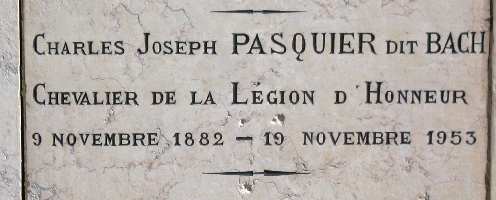 Au fond de ce cimetière se trouve la tombe d’un des enfants du village : BACH (Charles Joseph Pasquier : 1882-1953). Cet artiste eut trois vies : celle de comique-troupier tout d’abord, genre en vogue au début du siècle. Il créa deux chansons qui devaient connaître un beau succès puis devenir cultes : l’Ami Bidasse et la Madelon (qui devint un hymne quasi officiel des soldats de 14-18).