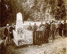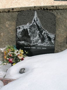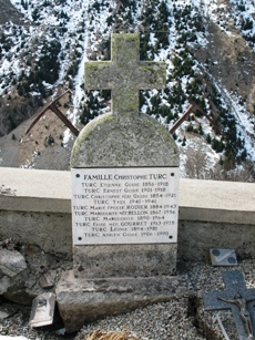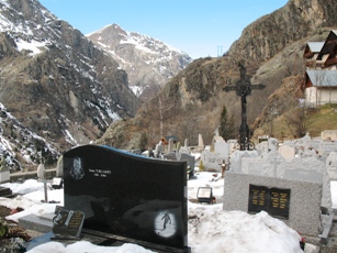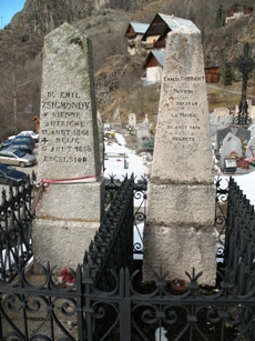 Une tombe attire l’attention : une stèle est entourée d’un ruban portant les couleurs de l’Autriche. Il s’agit de la tombe d’Emil ZSIGMONDY (1861-1885), qui, avec son frère Otto et Ludwig Purtscheller, fut en 1885 le premier vainqueur de la première traversée est-ouest de la Meije. Quelques jours plus tard, il fit une chute mortelle et fut inhumé dans ce cimetière. Il était l’auteur de plusieurs ouvrages sur la montagne, et fut le théoricien des risques objectifs (climats, chute de pierres...) et des risques sujectifs (comportement du grimpeur) de l’alpinisme. Une stèle identique à sa droite abrite la dépouille d’Ernest Thorent (1854-1896), alpiniste Grenoblois qui se tua en 1896 : la photo de ses obsèques montre la stèle Zsigmondy déjà réalisée.