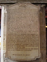 – L’un d’elle, daté de 1896, précise "Ici devant ont été déposés respectueusement les restes de XXII corps trouvés dans le sol de l’église au moment des travaux exécutés pour l’installation du calorifère".