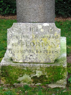 Il reposait au pied d’une colonne surmonté d’un buste daté de 1837, d’après l’oeuvre de Devéria. La Société des Cigaliers et des Félibres de Paris, tous originaires comme Florian du midi de la France et l’estimant comme leur précurseur, viennent chaque année en pèlerinage le premier dimanche de juin depuis 1879 au tombeau de leur compatriote. C’est ainsi que fut aménagé le petit jardin des félibres, faisant de Sceaux, selon la formule, la cité le plus méridionale de l’Ile-de-France.