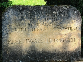 Un minuscule cimetière (quatre petites rangées de tombes seulement) nous y attend : dans ce charme bucolique repose le très fameux cruciverbiste Max FAVALELLI (1905 - 1989), qui se fit connaître tant par ses subtiles définitions de mots croisés que pour avoir été l’arbitre érudit de plusieurs jeux télévisés (Le mot le plus long, Des chiffres et des lettres).