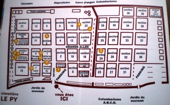 ( Les numéros qui suivent chaque tombe renvoient à ce plan, afin de les localiser).
